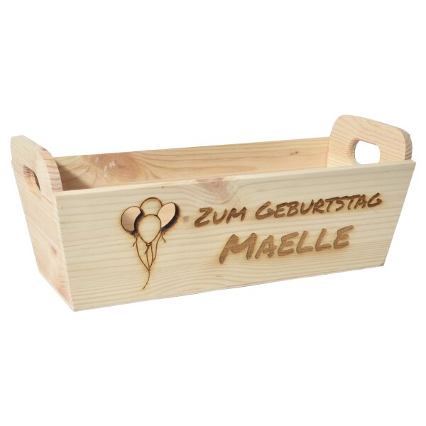 CHICCIE Geschenkkorb mit Henkeln Personalisierbar Wunschtext mit Luftballons 35x11x13cm Präsentkorb Holz Geschenkidee Holzkiste Geburtstag Glückwunsch Personalisierung